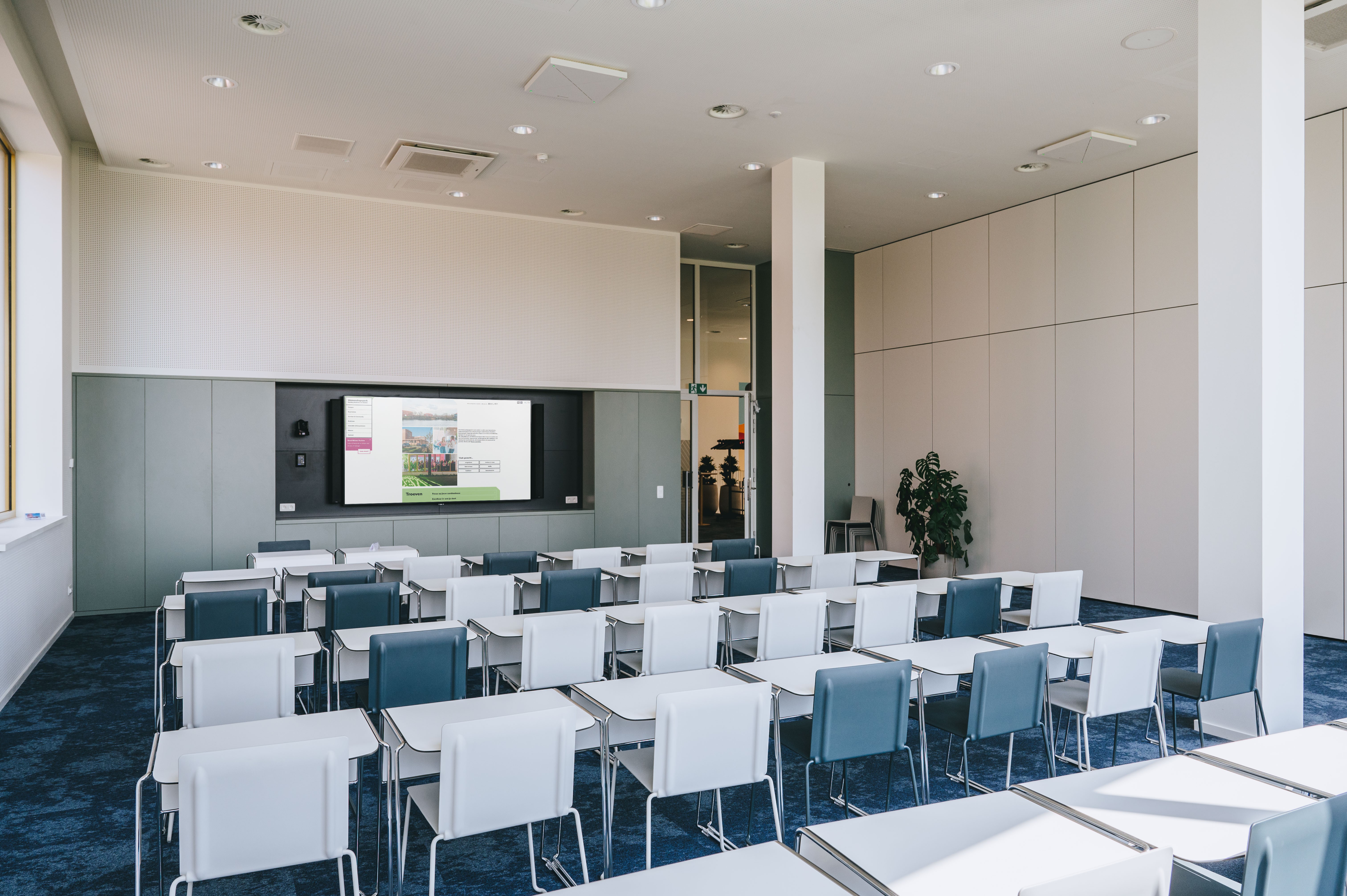 Meeting room Franklin is an equipped conference room ideally suited for training courses, presentations, lectures or press conferences. In combination with the adjoining foyer, this room also lends itself to networking events or symposia. There is also the possibility of combining the Rosalind and Franklin meeting rooms into one large Rosalind Franklin meeting room. The two rooms together can be used for events, seminars or meetings for up to 100 people.
