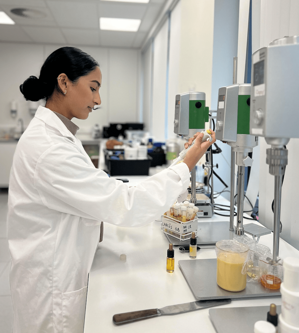 Shanti Bhatta, apotheker en oprichtster van Cosprof Studio, combineert een sterke wetenschappelijke basis met een uitgesproken ondernemersdrive. Vanuit haar labo in het Wetenschapspark, een inspirerende omgeving waar natuur, academische kennis en ondernemerschap samenkomen, bouwt ze met Cosprof Studio aan de toekomst van de (dermo)cosmetica.